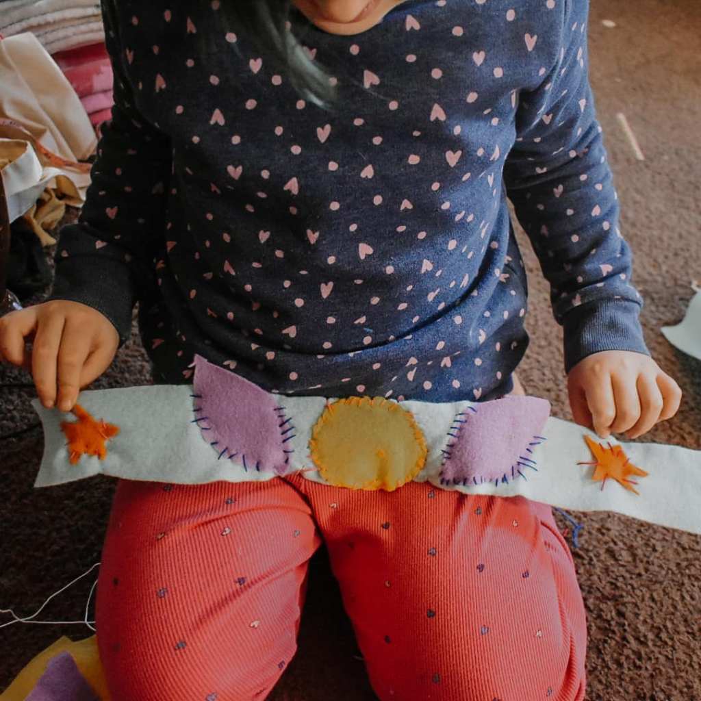 If you were to ask me what my favorite part of homeschool is, I would say it’s the allowance to be creative with my kids, and watch their creativity blossom. The activities in the Hearth Magic guide are, for lack of better words, magical! This past month, Audrey finally picked up basic sewing skills.