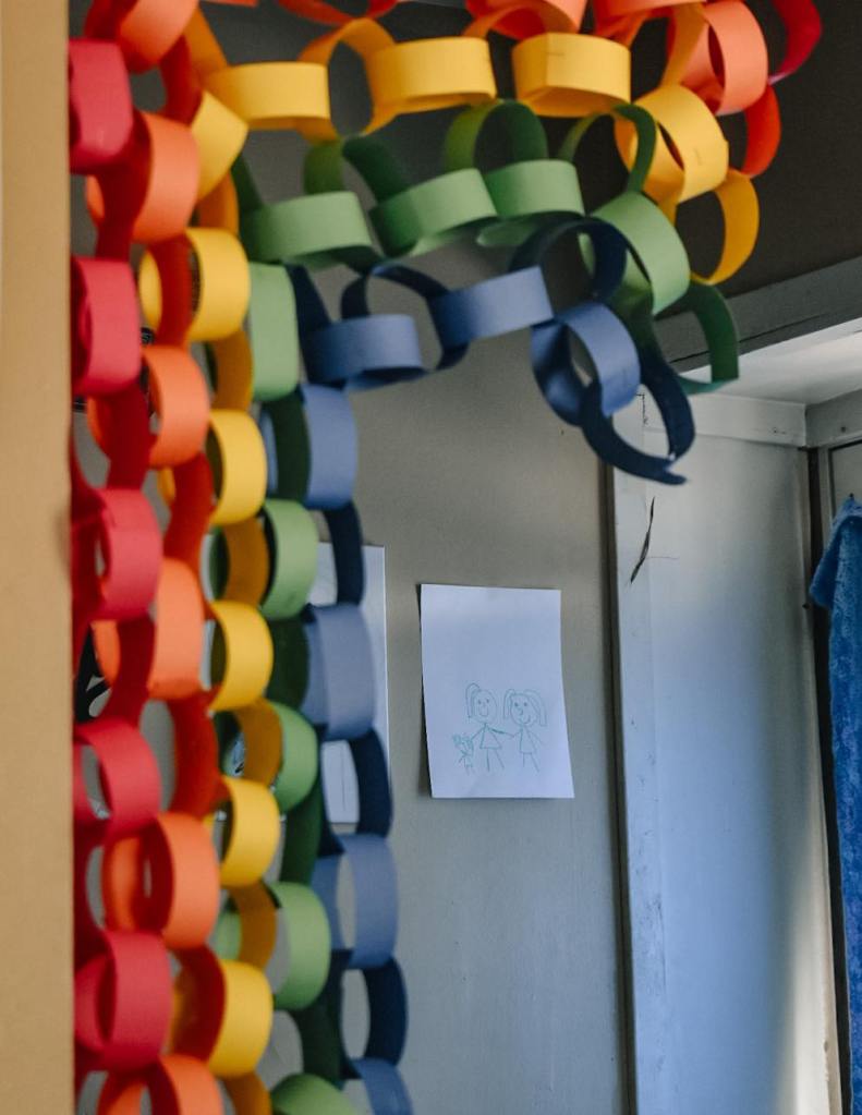 Paper chain rainbow- pretty self explanatory. Make chains of different colored paper and create a rainbow out of them. We hung ours up in the archway between our entry and our living room!