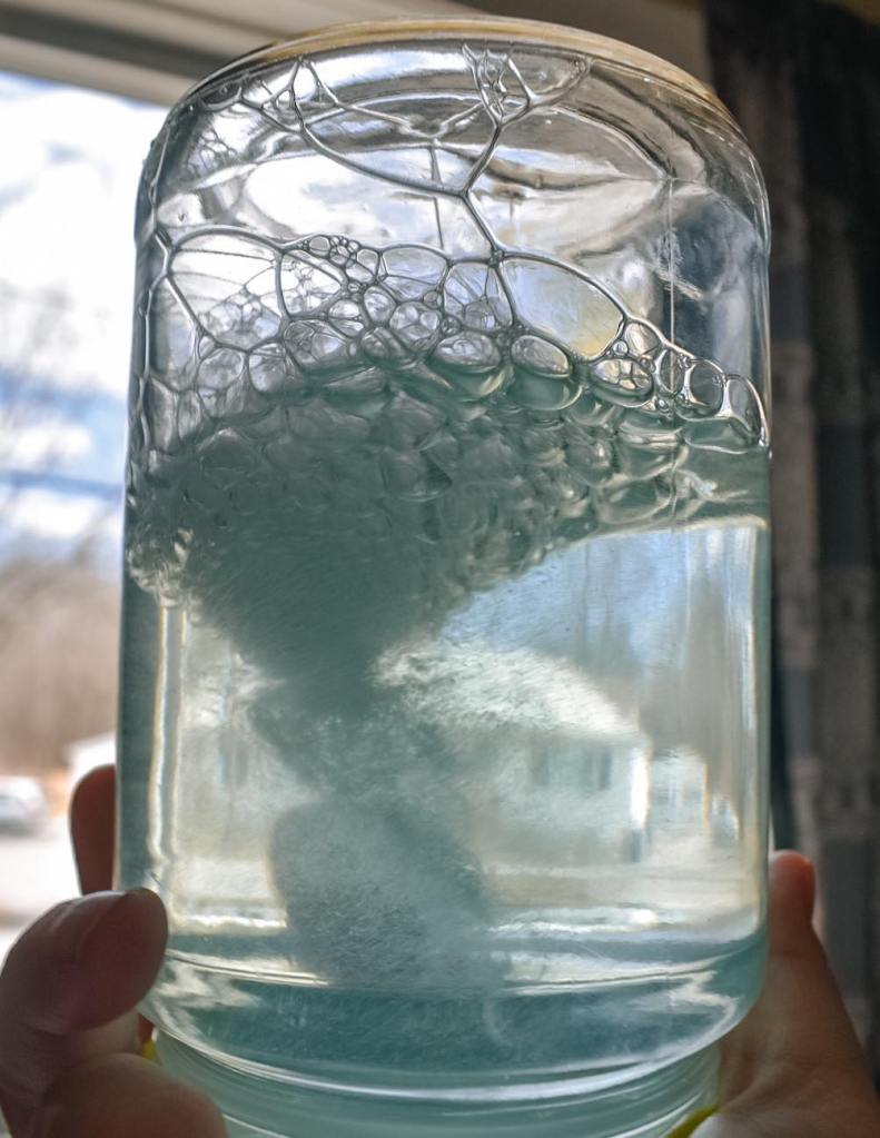 Our second weather science experiment was a tornado in a jar. Directions for this experiment can be found here.